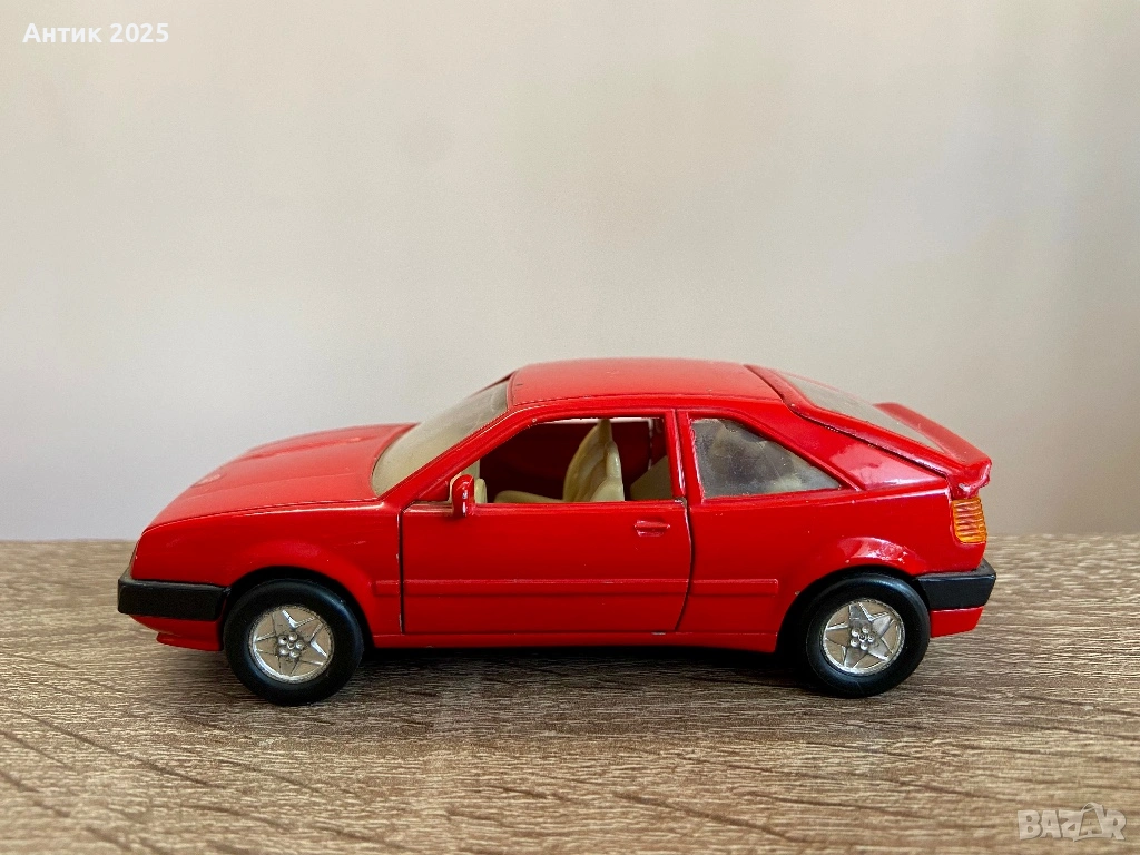 Колекционерски модел Welly No. 9039 Volkswagen Corrado в яркочервен цвят. Детайлна реплика на култовото спортно купе на VW, изработена от метал с пластмасови елементи.