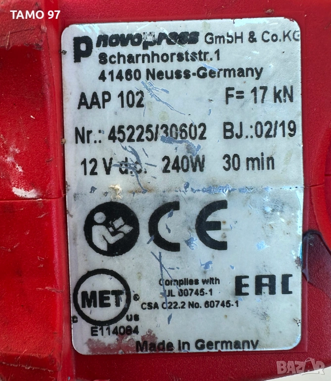 Продавам професионален сет от акумулаторен експандер и акумулаторна преса за многослойни тръби на Novopress, всичко е в много добро визуално и техническо състояние. Оригинално немско производство са, внос от Франция. Комплекта включва експандер с накрайници, аксиална преса с челюсти, 3 броя батерии по 12V, зарядно устройство и оригинален куфар. Пращаме с опция преглед и тест с куриерска фирма еконт може и лично предаване за гр. Шумен.