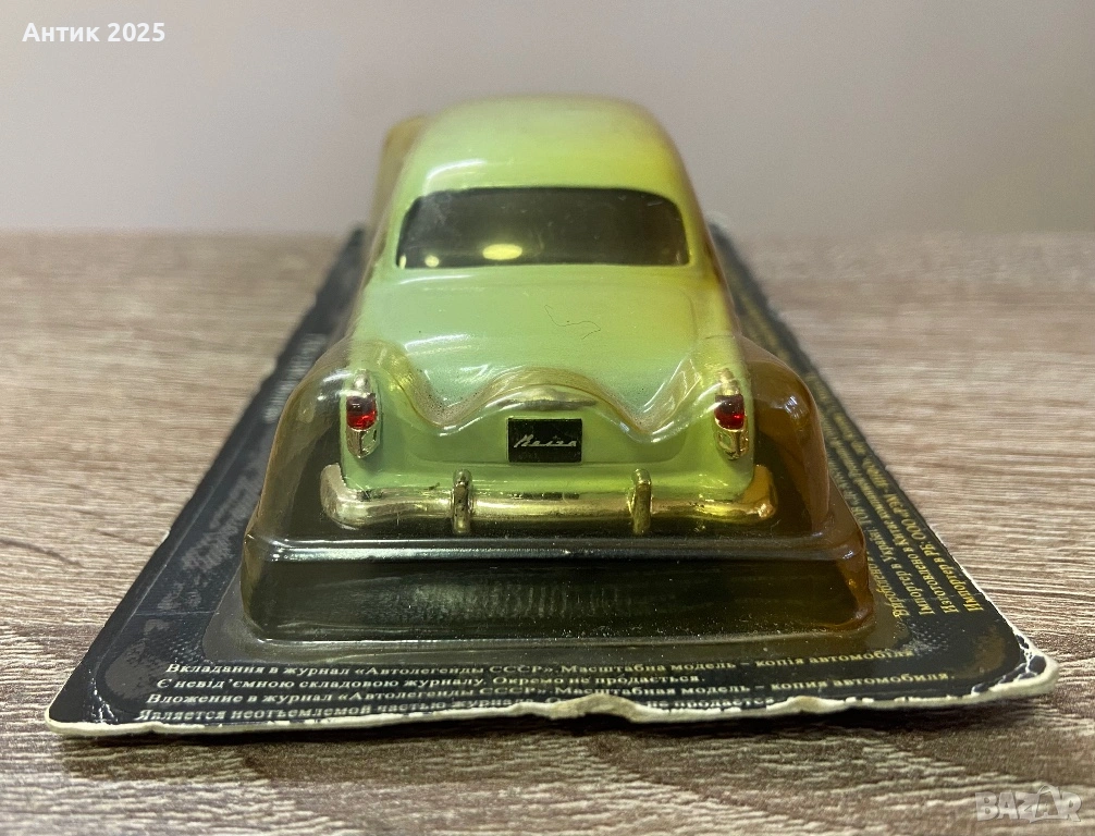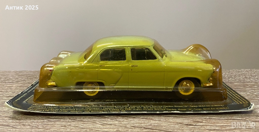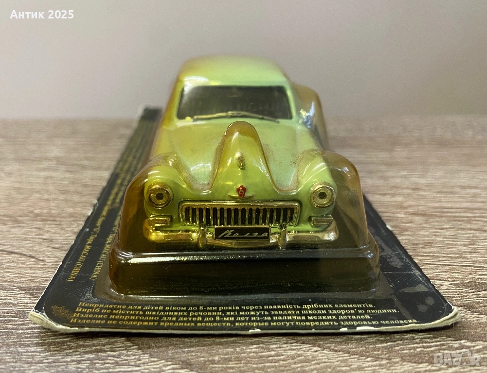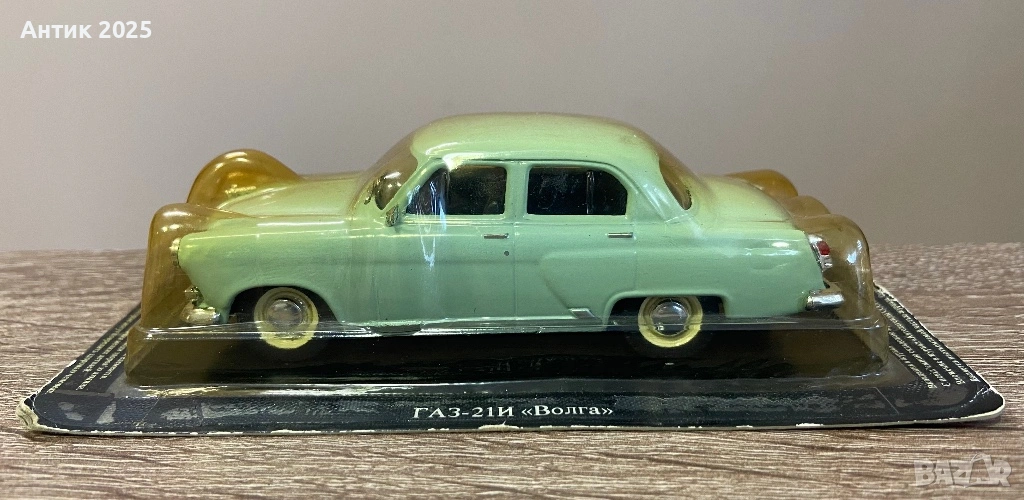 Продавам мащабен модел на легендарния автомобил ГАЗ-21И «Волга» в характерен ретро цвят „резеда“ (светлозелен). Идеален избор за допълване на колекция или за сантиментален подарък за ценители на ретро колите. Чисто нов модел, съхраняван в оригиналната си фабрична опаковка (блистер).