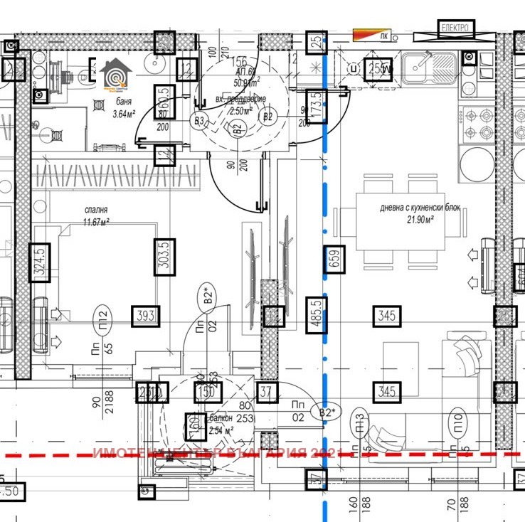 Жилището е със застроена площ от 50,91 кв.м и е със следното разпределение: входно антре, дневна с кухненски бокс, спалня, баня с тоалетна и тераса. Апартаментът е проектиран с правилни форми на помещенията и оптимално усвояване на пространството, което гарантира комфорт и практичност.