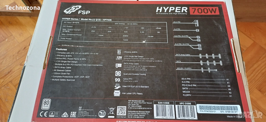 Продавам надеждно и мощно компютърно захранване FSP Hyper 700W, подходящо както за геймърски конфигурации, така и за работни станции.