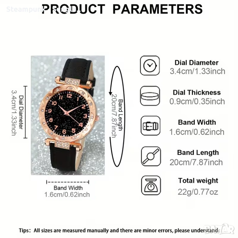 Комплект 1 Дамски кръгъл кварцов часовник и 5 гривни - идеален избор за ежедневно носене и подарък !