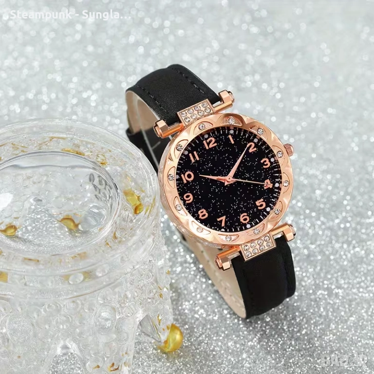 Комплект 1 Дамски кръгъл кварцов часовник и 5 гривни - идеален избор за ежедневно носене и подарък ! → Обява 53597205