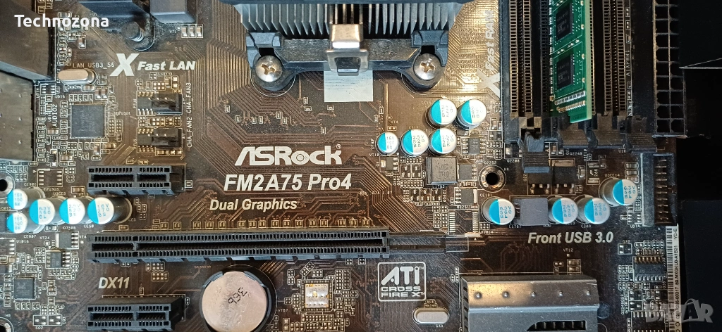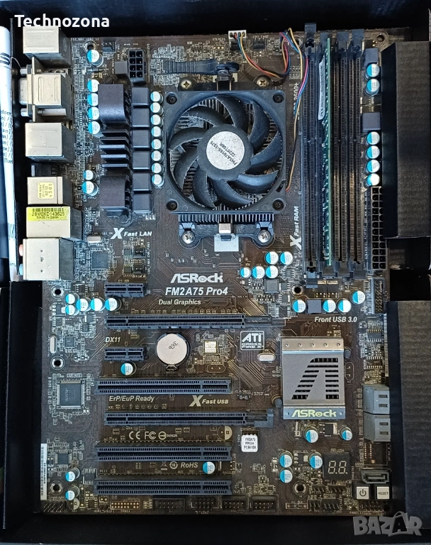 Продавам дънна платка ASRock FM2A75 Pro4, в комплект с работещ FM2 процесор – идеално решение за бюджетен компютър, офис машина, учебна конфигурация или домашен мултимедиен PC.