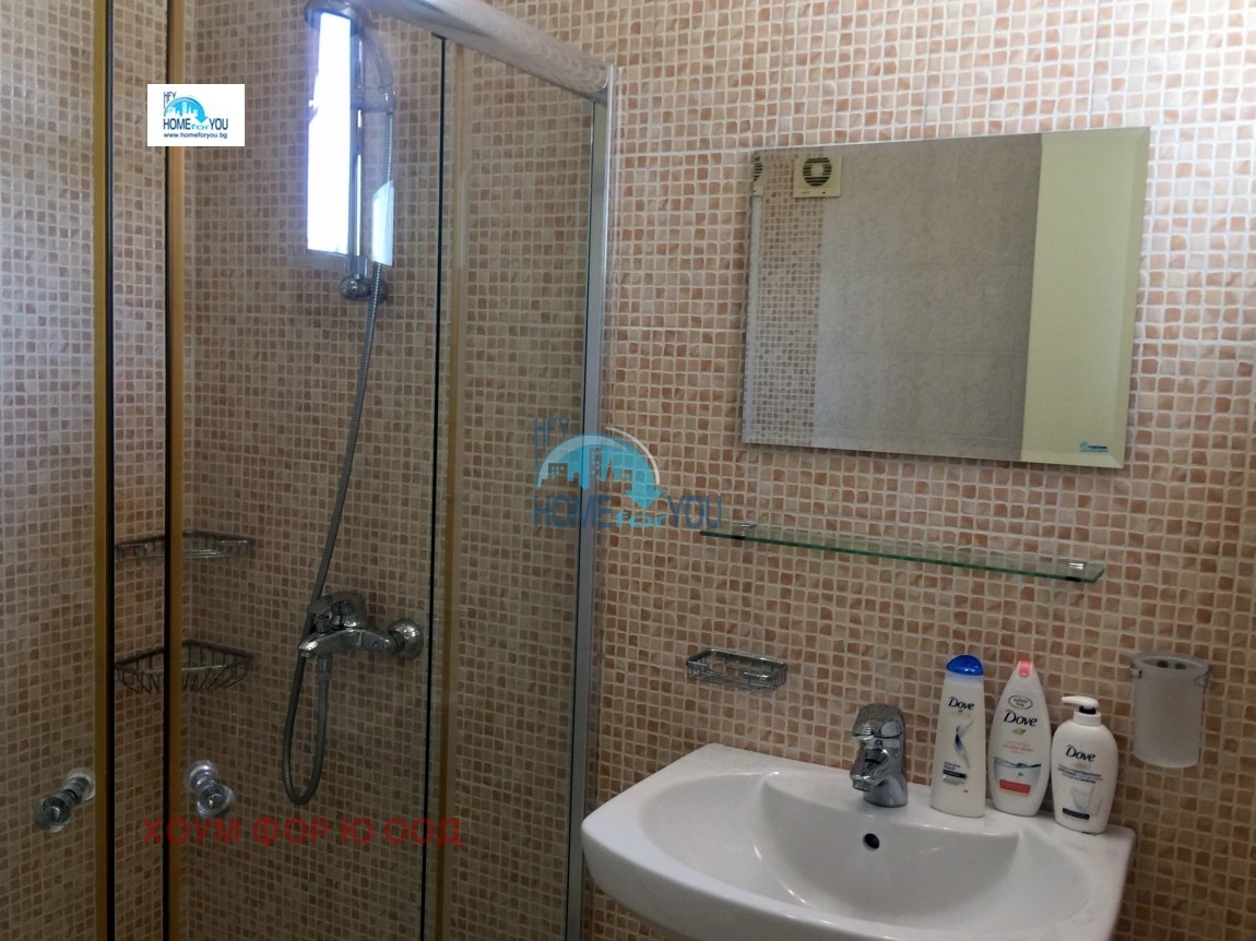 Включва просторно антре с гостна тоалетна, хол с кухненски бокс, две спални, две бани с душ кабини и три тераси с прекрасна гледка към морето и богато озеленена и добре обгрижвана целогодишно зелена среда.
