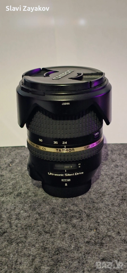 Tamron 24-70 g1 (първата версия) в добро състояние, има дребна драскотина на челната леща, която влияе единствено при снимане срещу слънцето. С чисто нови гуми на фокусния ринг и зуум ринга. -320е