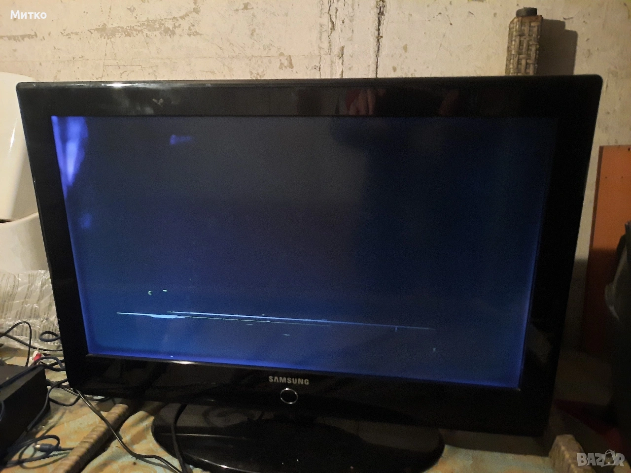 Здрав работещ телевизор марка Самсунг модел LE32A436T1D. SAMSUNG. Телевизора работи само има една черта в долната част забележима не е фатална но се вижда.Видимо и от снимките.Има и дистанционно управление.