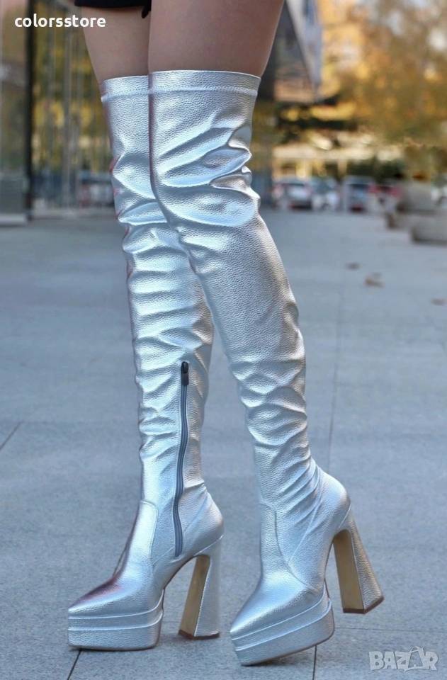 Чизми на ток - сребриста кожа - YSV2 , снимка 1 - Дамски ботуши - 53597606 1/1