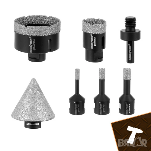 Комплектите диамантени боркорони Bigstreen са създадени за работа там, където обикновените свредла не се справят. Те позволяват прецизно и чисто пробиване на отвори в твърди и много твърди материали като гранитогрес, керамика, естествен камък, гранит, мрамор и бетон. Благодарение на вакуумно запоените диаманти се постигат гладки ръбове без отчупвания и пукнатини, което ги прави подходящи както за професионална, така и за домашна употреба.