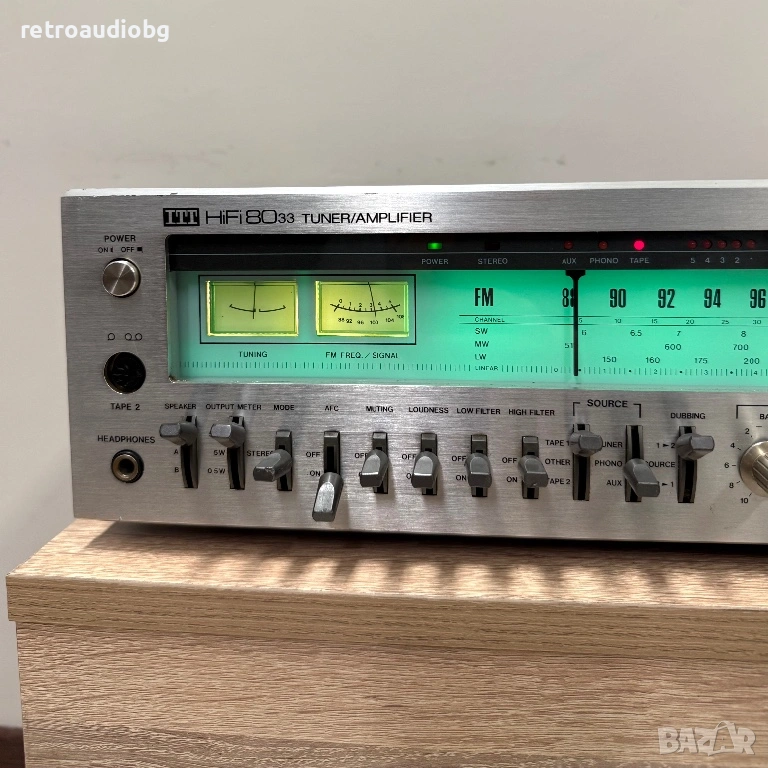 Този ресивър има характерен за ITT ретро стил с изчистени линии и издръжлива конструкция. Изработен от качествени материали, това устройство не само че звучи добре, но и изглежда елегантно, със своите метални и пластмасови акценти. Ресивърът *ITT HiFi 8033* е снабден с голям, добре видим дисплей и контроли, които позволяват лесно управление на силата на звука, настройките на басите, високите честоти и други. Предлага не само възможност за усилване на аудио сигнала, но и вграден FM/AM тунер за приемане на радиостанции. Той осигурява мощен и ясен звук с отлична динамика и прецизност, което го прави идеален за любителите на висококачествено слушане. Регулаторите за настройка на тоновете позволяват детайлно регулиране на звуковите параметри, така че да може да се постигне идеално балансирано аудио. Тунерът осигурява стабилен прием на радиопрограми с отлична чувствителност и ясност на звука.