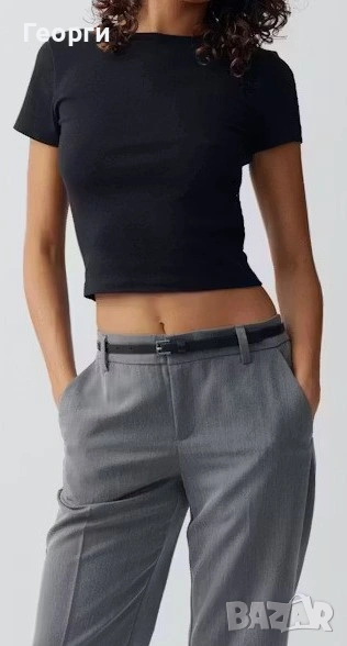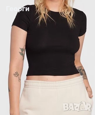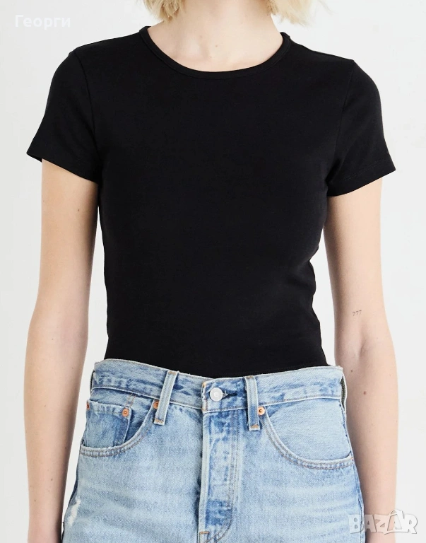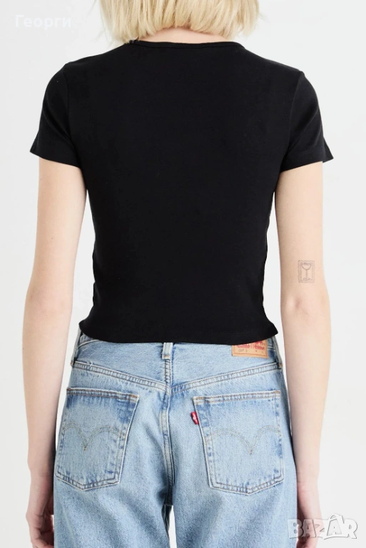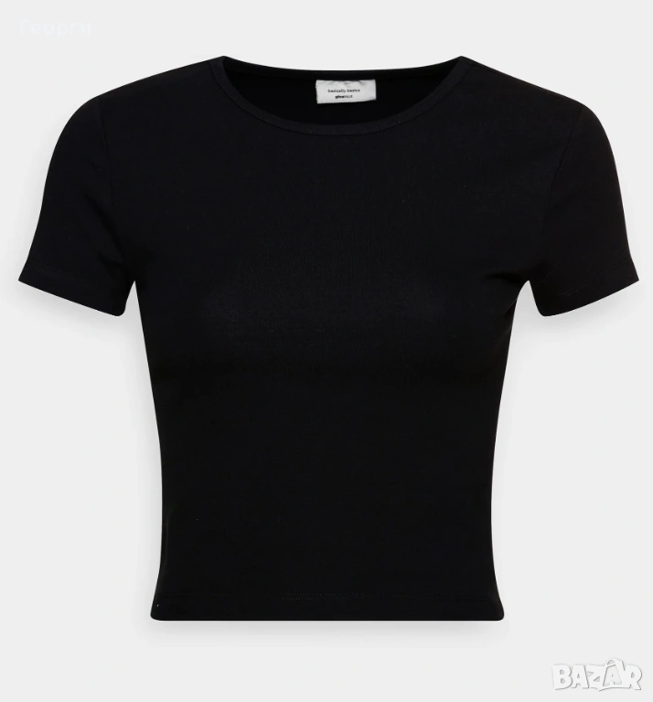 1). НОВА черна къса дамска тениска от марката Gina Tricot, модел „basically basics“. Кръгло не е много дълбоко деколте, дължина на тениска е до талия и има прилепнала кройка.