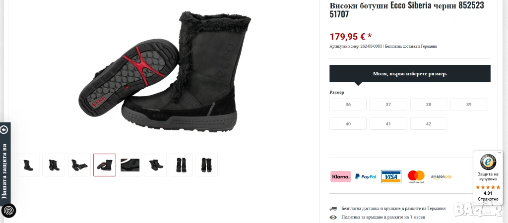 дамските зимни ботуши Ecco Siberia (модел 852523-51707). Те са проектирани за студено и мокро време, като съчетават функционалност и комфорт.
