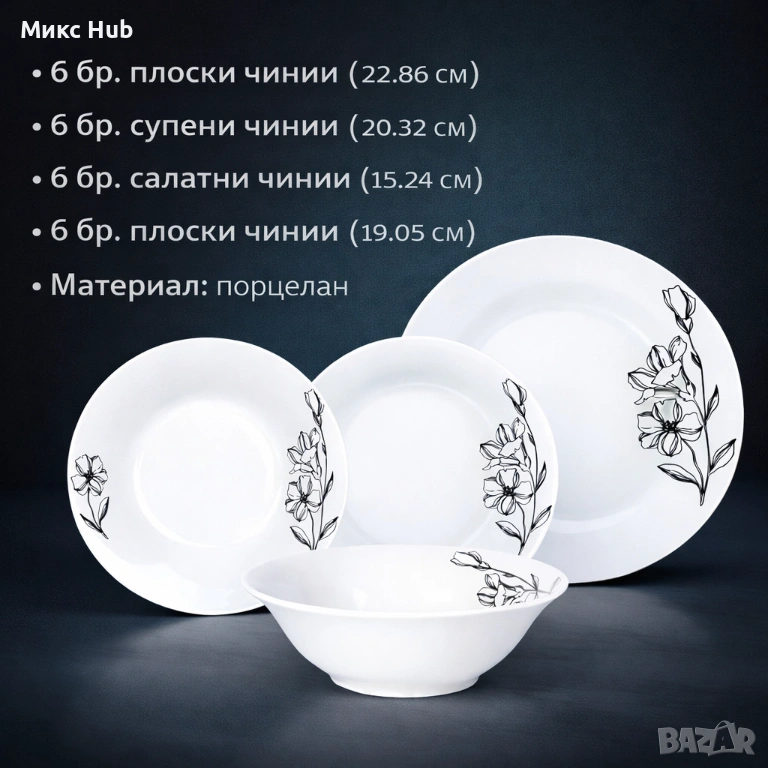 Комплект чинии 24 части с елегантен флорален дизайн → Обява 53598205