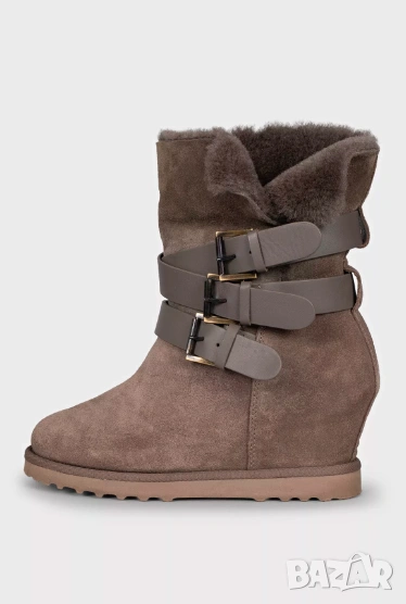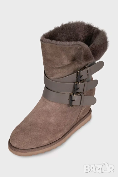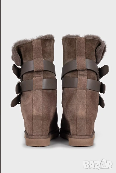 - Материали: Изработени са от естествен велур с топла подплата и яка от овча кожа (shearling).