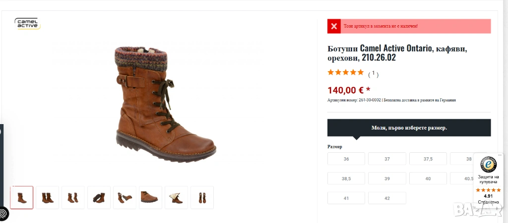 Ботуши Camel Active Ontario, кафяви, орехови, номер 38,5