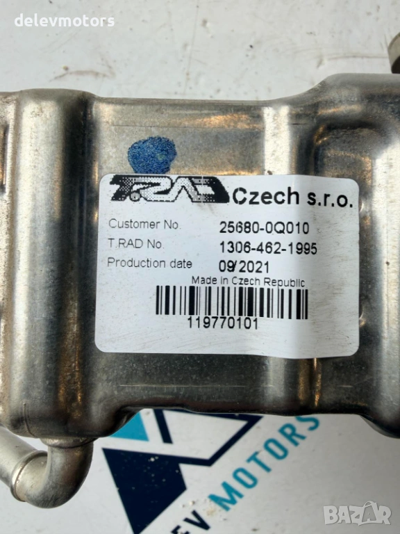 25680-0Q010 AGR охладител от Toyota Aygo 1.0 VVTI, 2018, 72 ph., 5sp., engine 1KR, 80 000 km., euro 6, Тойота Айго 1.0 VVTI, 2018 г., 72 кс., 5 ск., двигател 1КР, 80 х. км., евро 6 в автоморга Delev Motors, между с. Каменар и с. Куманово гр. Варна.