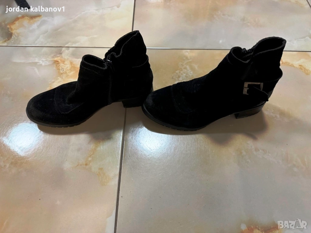 Подарявам - дамски черни велурени боти с ток номер 36 стелка 23см. ток 3см. → Обява 53598538