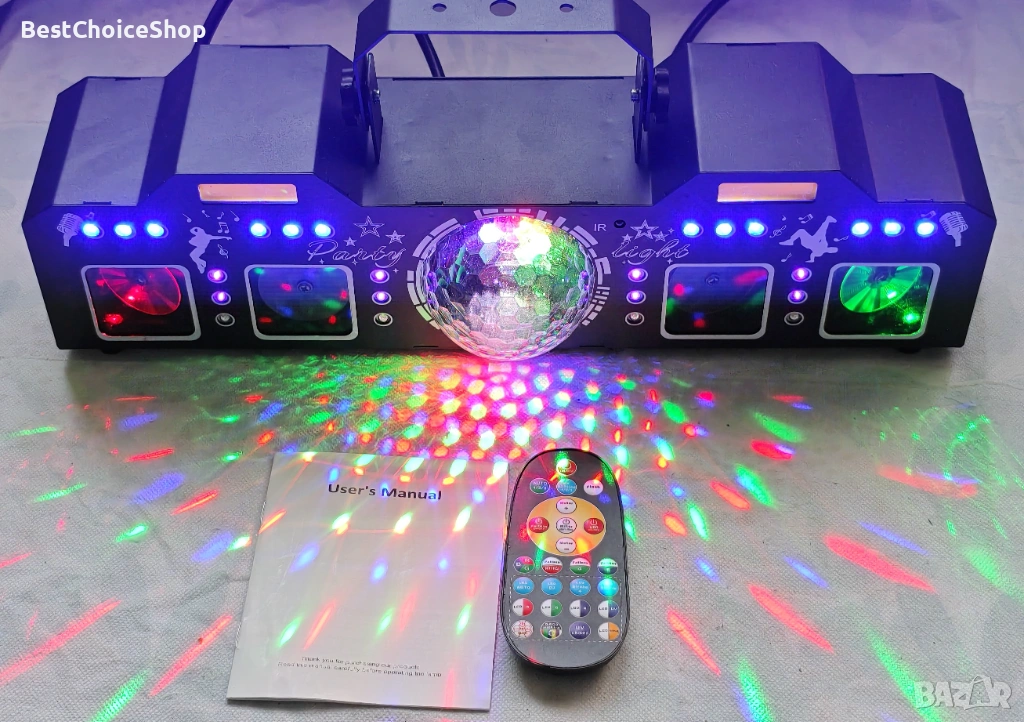 Диско и парти светлини с DMX512, стробоскоп, UV светлина и диско топка - DJ светлини