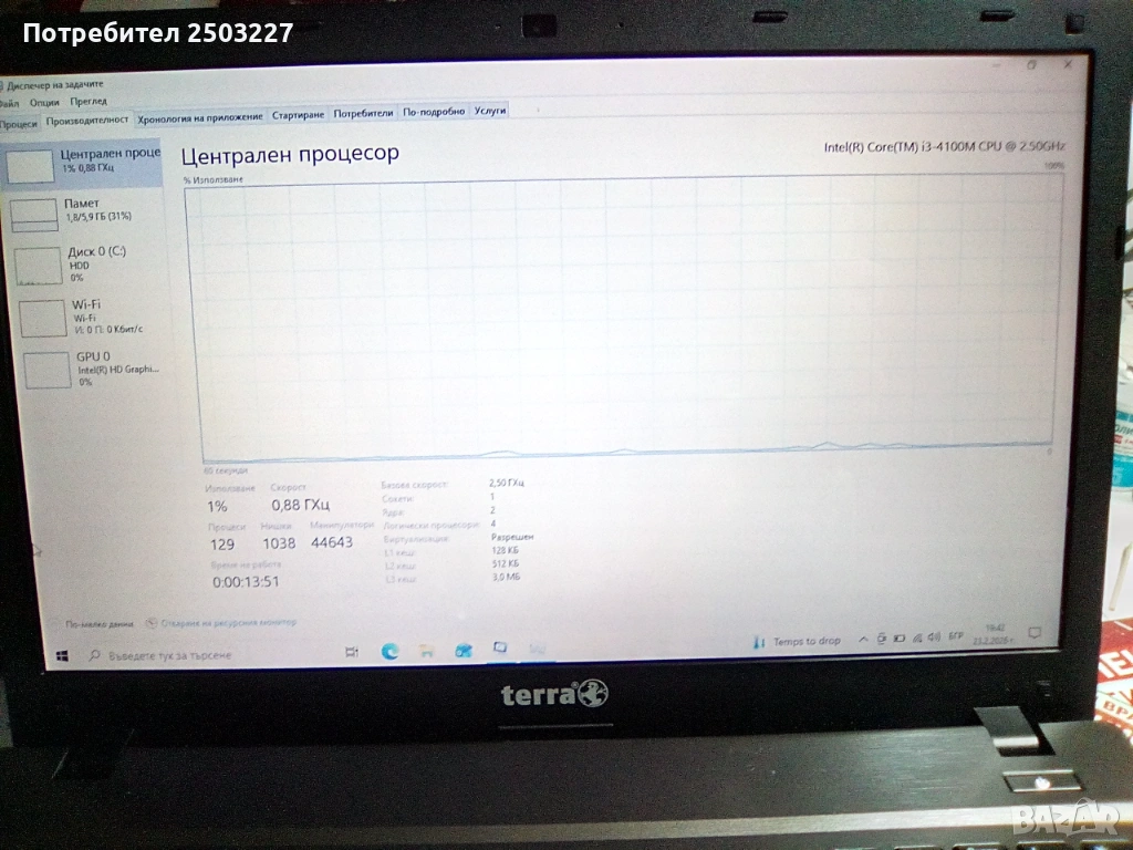 - CPU - Intel(R) Core(TM) i3 - 4100M CPU - 2.50 GHz. 2 ядра с 4 логически процесора.