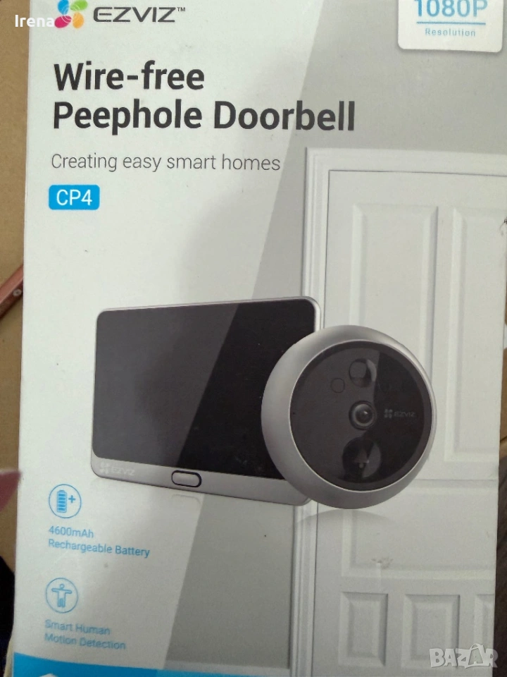 EZVIZ Безжична шпионка за врата - 4,3-инчов цветен сензорен екран с 3-месечен живот на батерията- презареждаема , 1080P звънец за входна врата, разпознаване на човек, двупосочно видео обаждане, нощно виждане, SD, CP4