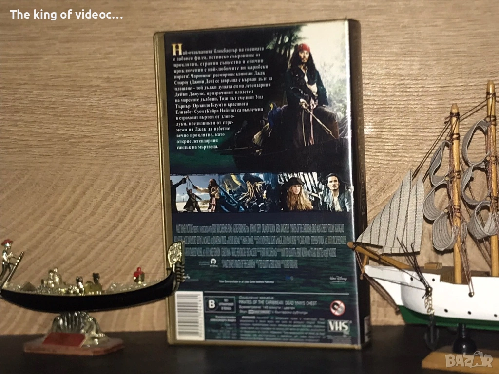 Продавам оригинална видеокасета “Карибски Пирати 2 - Сандъкът на мъртвеца “ С главното участие на Джони Деп , Орландо Блум и Кийра Найтли. Една от последните в производство видеокасети . 2006 година . С български субтитри . Разпространител Aleksandra Video . Касетата е в златиста кутия произведена в Германия ( Made in Germany ) . Обложката , кутията и касетата са като чисто нови . Филмът работи отлично . Времетраене 145 минути ( 2 ч. и 25 минути ) 12 снимки на обявата и 3 снимки на касетата в работещо състояние . Златистите видеокутии със златист цвят са с лимитиран ограничен тираж от само 300 броя . Изпращам с Еконт , Спиди или лично предаване .