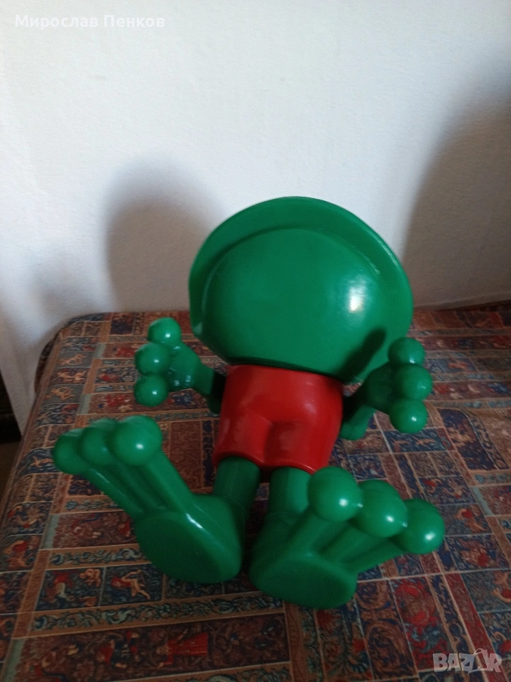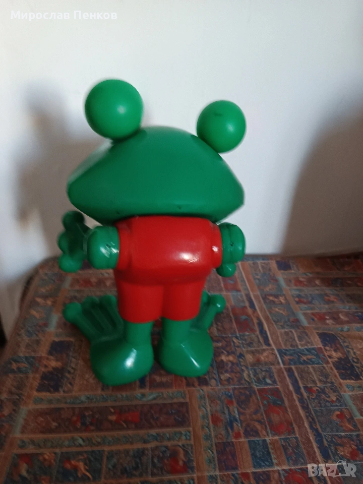 Стара пластмасова играчка:Жабок,размери в снимките.Без счупено и липси.