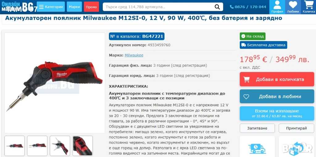 Продавам акумулаторен поялник на Milwaukee имам налични 2 броя като нови са, използвани малко и работят перфектно без забележки, внос от Франция. Обявената цена е за брой. Пращаме с опция преглед и тест с куриерска фирма еконт може и лично предаване за гр. Шумен. Магазинската цена е: 179евро