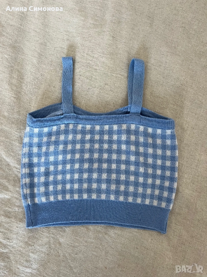 Син кариран плетен кроп топ XS 💙🤍 → Обява 53599635