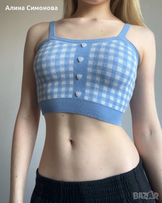 Син кариран плетен кроп топ XS 💙🤍, снимка 1 - Корсети, бюстиета, топове - 53599635 Син кариран плетен кроп топ XS 💙🤍, снимка 2 - Корсети, бюстиета, топове - 53599635 Син кариран плетен кроп топ XS 💙🤍, снимка 3 - Корсети, бюстиета, топове - 53599635 1/3