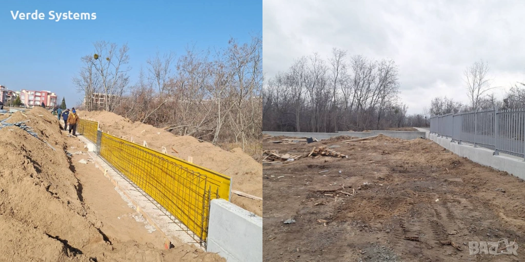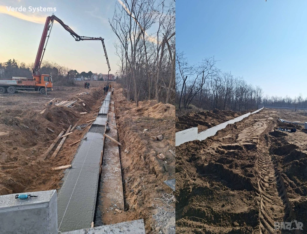 Изпълняваме цялостно изграждане на бетонни фундаменти, подпорни стени и оградни системи – от изкоп до кофраж, бетониране и завършен вид.