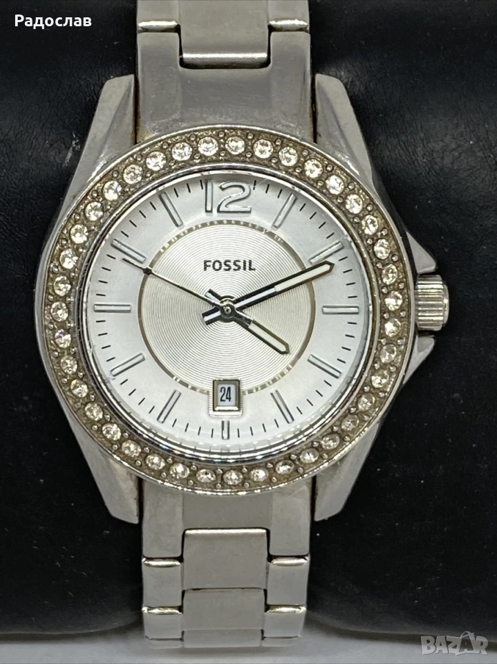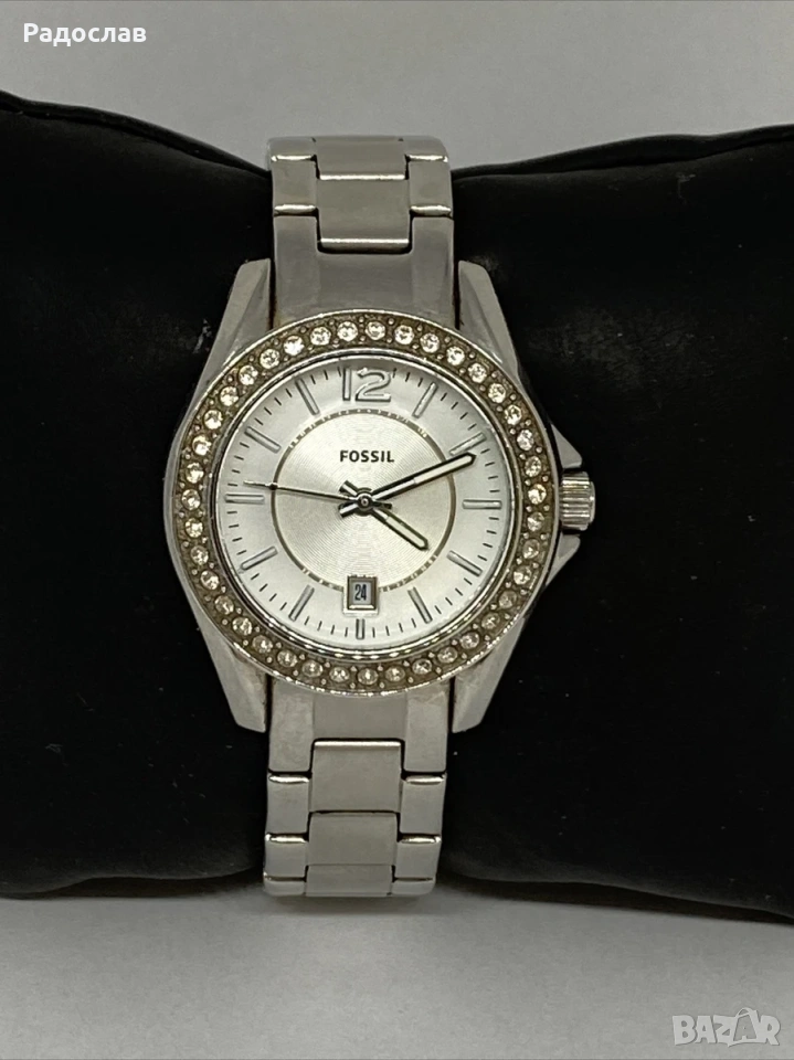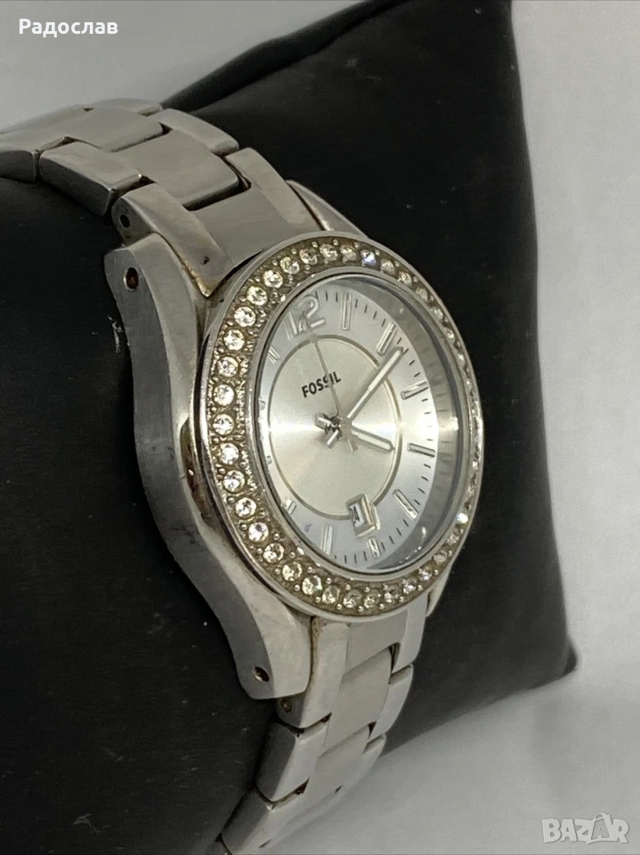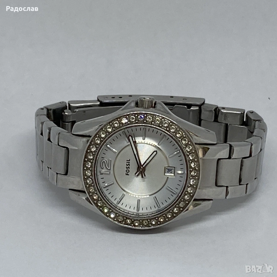 Fossil ES2879 Дамски сребърен кварцов ръчен часовник от неръждаема стомана с аналогов циферблат → Обява 53599724