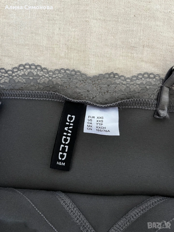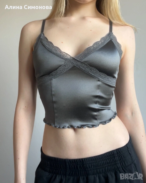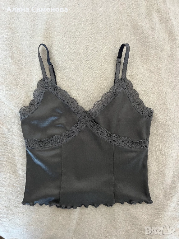 Сив сатенен топ H&M XXS с дантела🤍 → Обява 53600090