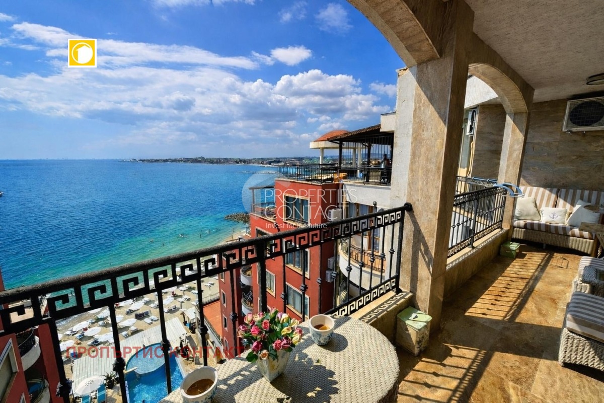 Предлагаме за продажба просторен тристаен пентхаус в малка бутикова сграда, разположена директно на плажа в Несебър. Площ: 182 кв.м Тип: Пентхаус Гледка: Фронтална морска панорама ? Летище Бургас: 25 км Разпределение: просторна дневна отделна кухня две спални голяма лоджия с директен изглед към морето три бани Апартаментът се продава напълно обзаведен и оборудван, с опънати тавани и качествени довършителни работи. Имотът е отлично поддържан и готов за нанасяне. Подземен паркинг – възможност за покупка или наем на паркомясто. Сграда и удобства: малка кооперация с около 20 апартамента басейн с детска и възрастна зона озеленен двор оградена и поддържана територия качествено строителство ? Предимства: ? Първа линия море ? Тиха и престижна локация ? Подходящ за целогодишно живеене ? Отлична инвестиция във висок клас недвижим имот