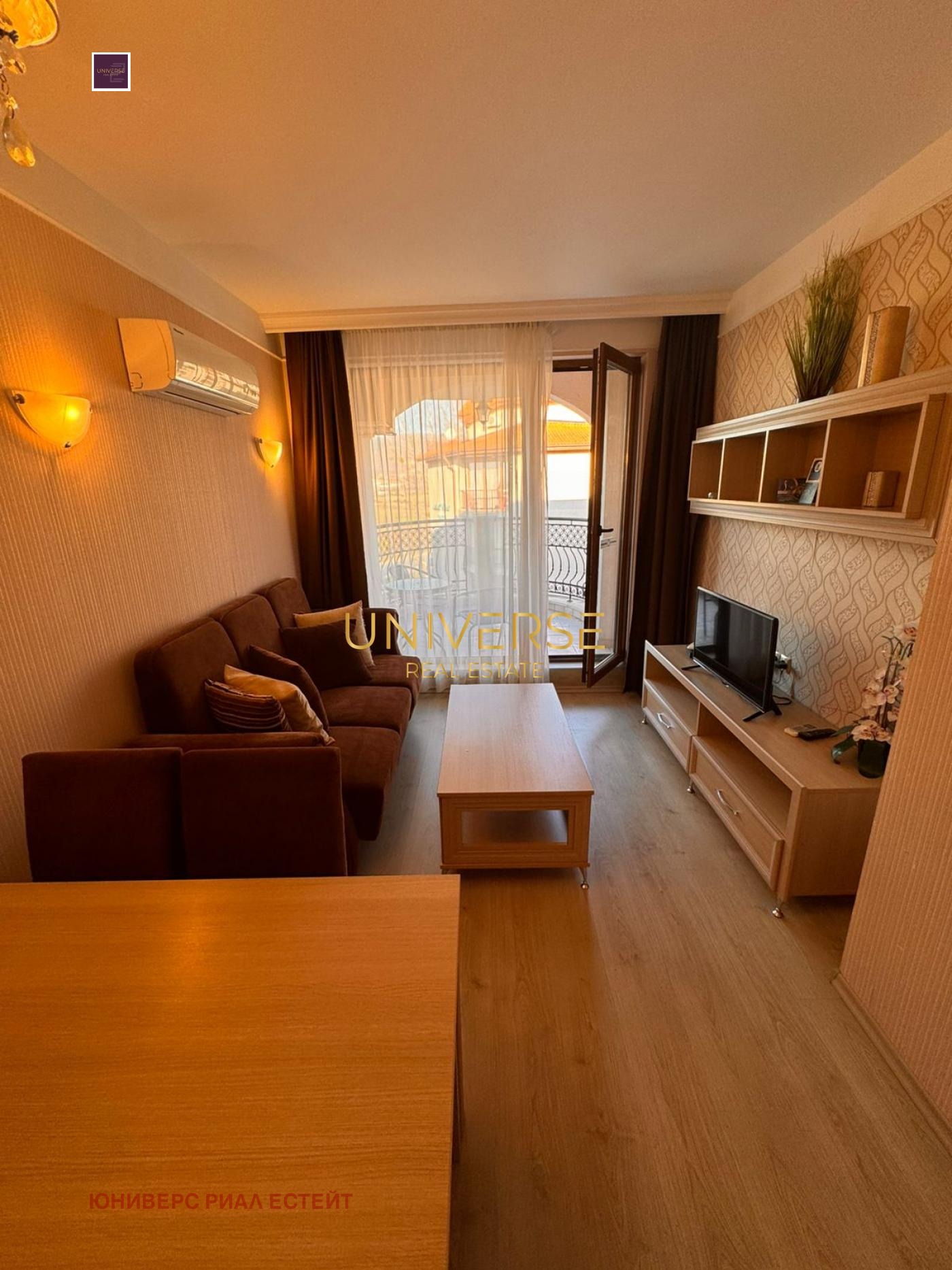 Представяме за продажба апартамент с две спални в премиум комплекс в Слънчев бряг. Състои се от трапезария/кухня, спалня, баня и тераса. Модерен ремонт, уютни, светли апартаменти. Налични са всички необходими уреди. Комплексът разполага с голяма зелена площ. Живеещите имат достъп до открит фитнес център, волейболно игрище, джакузи, бар, детска площадка, два басейна, ресторант с разнообразна кухня, футболно игрище, голям зелен парк за релакс и разходки, достатъчно място за паркиране, 24-часова охрана, видеонаблюдение и поддръжка. Комплексът е отворен целогодишно. Акт 16.#5383