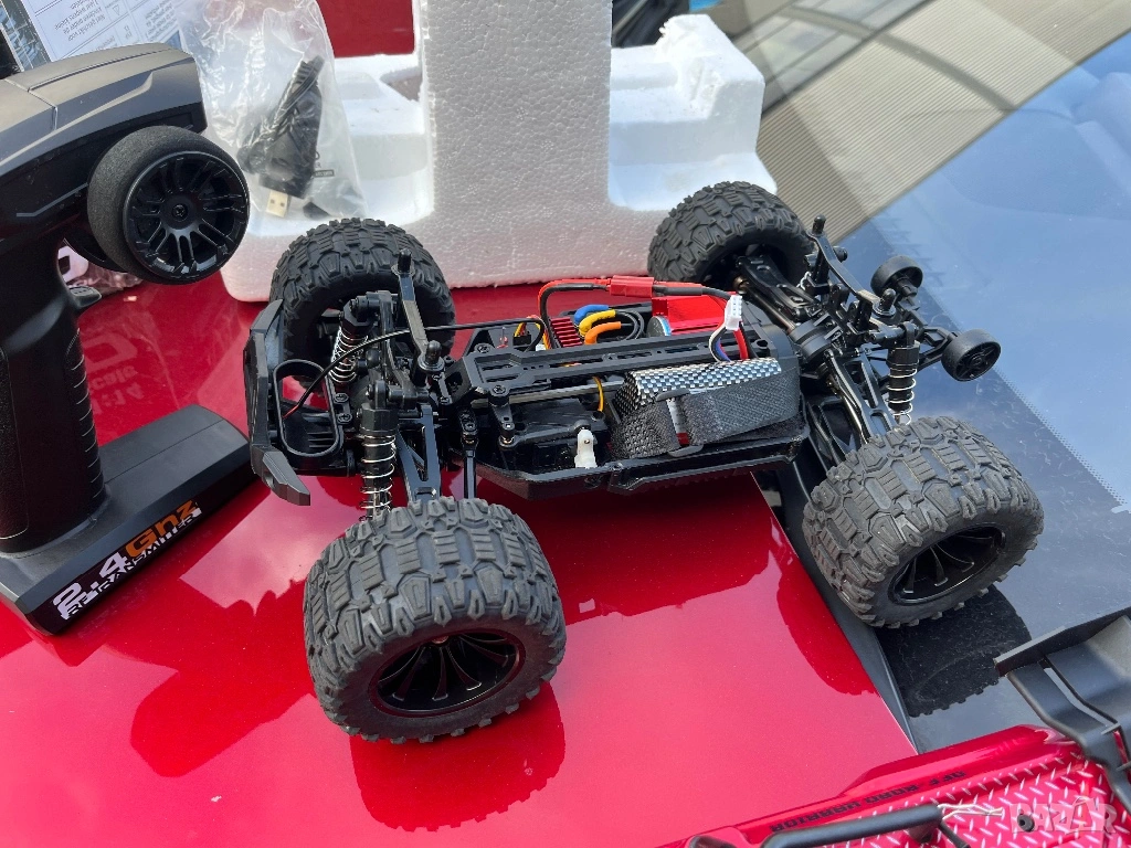 количката е карана няколко пъти има 3 батерии 11.4v зарядно дистанционно пълен комплект безчетков мотор 4х4