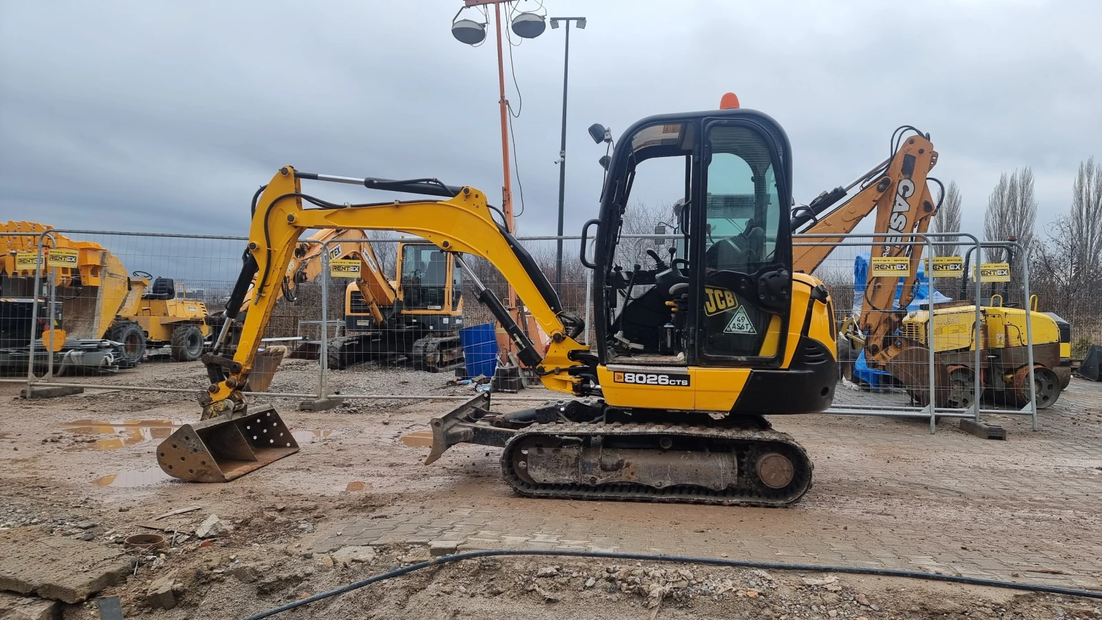 JCB 8026 CTS 2018 Мини верижен багер Кат. : BTX18173 Основна информация Марка / Модел: JCB 8026 CTS Тип: Мини верижен багер (Zero Tail Swing) Година на производство: 2018 Отработени моточасове: 4 674 мтч Работно тегло: 2 967 кг Състояние: Добро работно състояние Бързосменник: Да Хидравлични линии за чук: Да Тип ходова част: Верижна Вид вериги: Гумени Двигател и мощност Марка двигател: Perkins Тип двигател: Дизелов Мощност: 24 к. с. Вид гориво: Дизел Охлаждане: Водно Размери на машината Дължина: 4 200 мм Ширина: 1 500 мм Височина: 2 420 мм Междуосие (верижна база): 1 600 мм Работни характеристики Дълбочина на копаене: 2 820 мм Хоризонтален обсег: 4 800 мм Височина на разтоварване: 3 050 мм Максимална височина на копаене: 4 600 мм Товароподемност: 900 кг Сила на разкъсване (кофа): 23 kN Сила на разкъсване (рамо): 18 kN Динамика и хидравлика Максимална скорост: 4, 3 км/ч Работно налягане: 210 бара Дебит на хидравличната система: 60 л/мин Оборудване и комфорт ROPS/FOPS кабина Климатик Отопление Радио Работни светлини