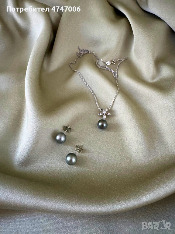Комплект бижута с истински таитянски (френски полинезийски) перли → Обява 53600379