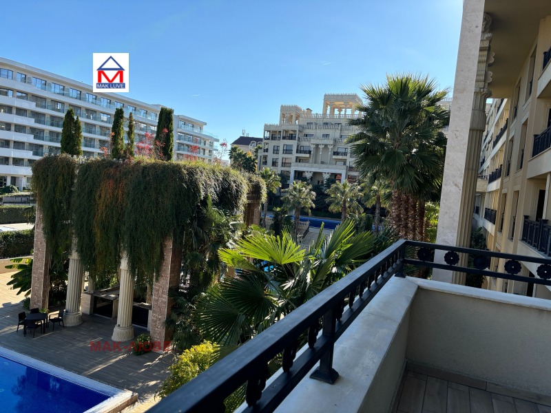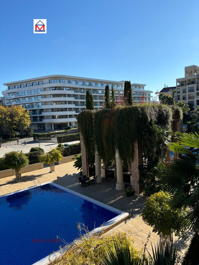 спалня с двойно легло, баня с тоалетна, душкабина; балкон с изглед към вътрешен двор. Подходящ за комфортна почивка и цялогодишно живеене. Комплексът е модерен, луксозен и удобен, богато озеленен, с няколко басейна, охрана, видеонаблюдение, бар, ресторан.
