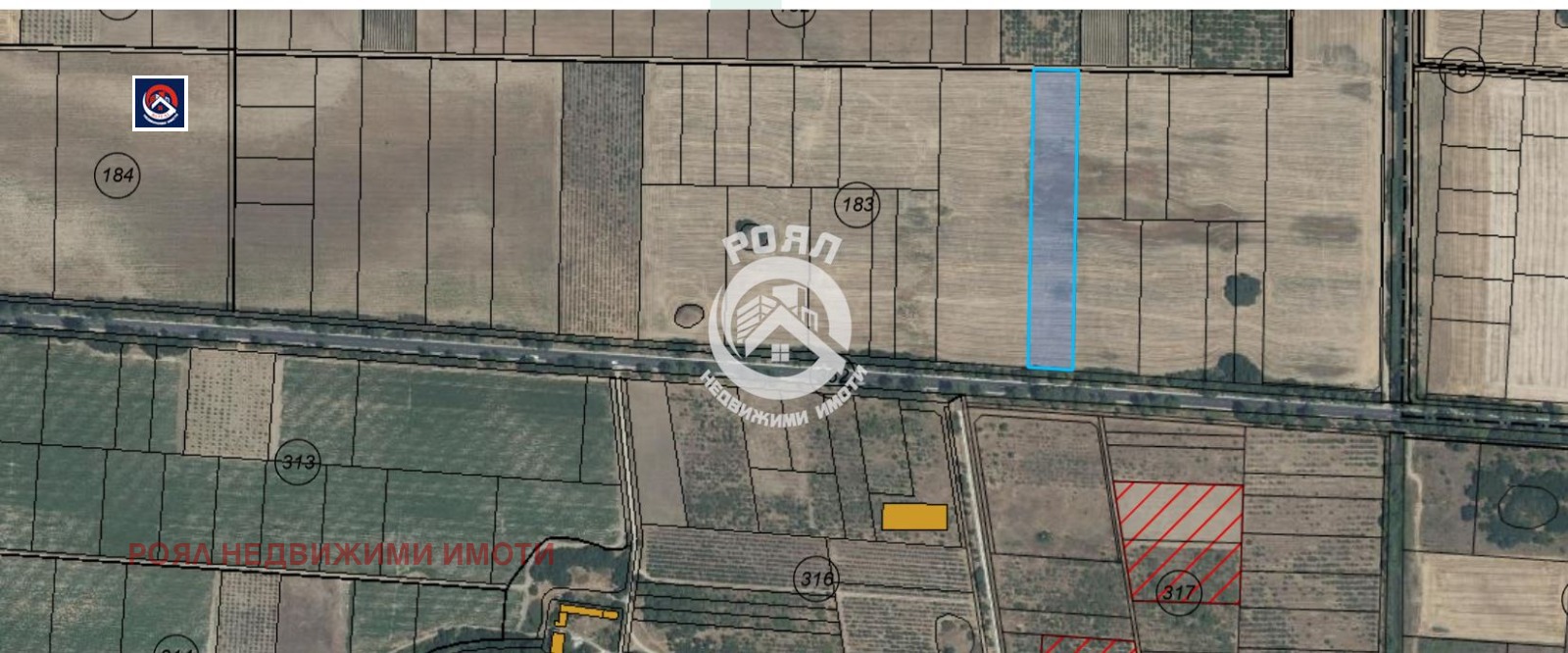 Роял имоти ,Ви предлага Земеделски имот с голям потенциал на първа линия на Пазарджишко шосе отлична видимост и достъп за бизнес!