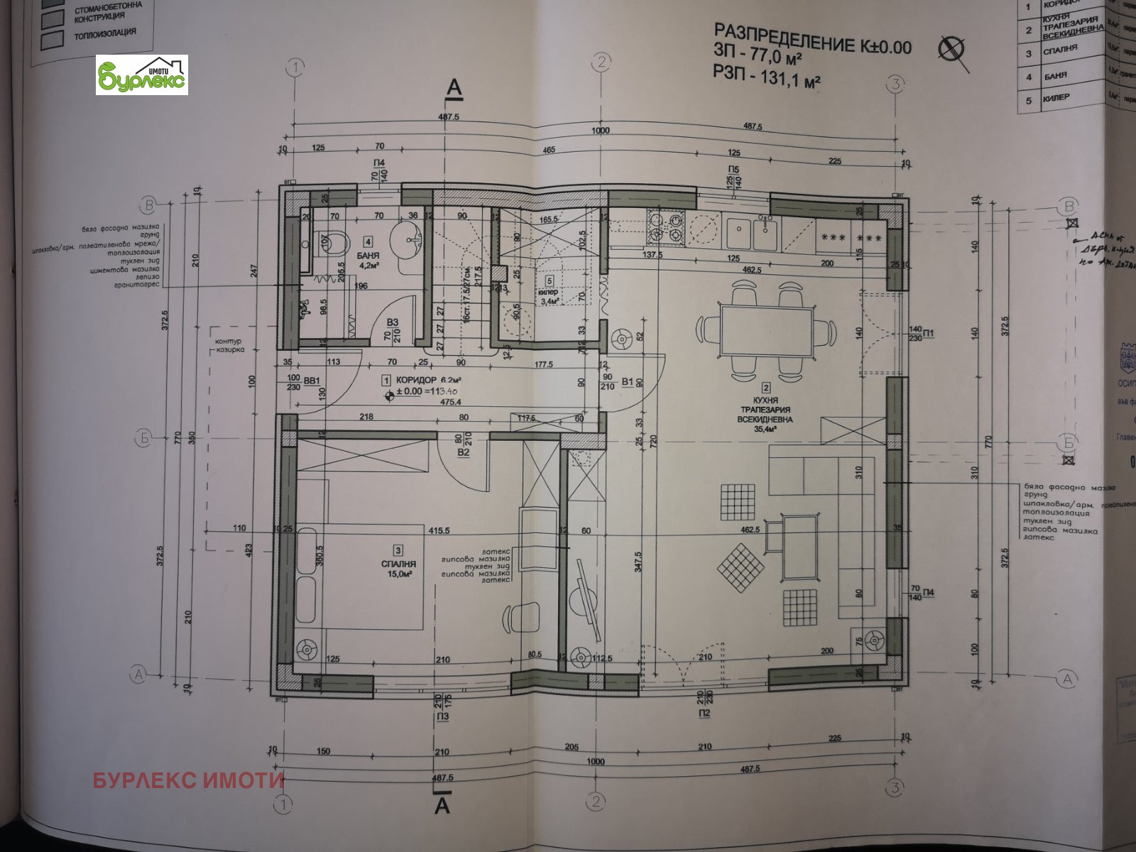 Застроената площ на къщата е 180 кв.м. и се състои от :