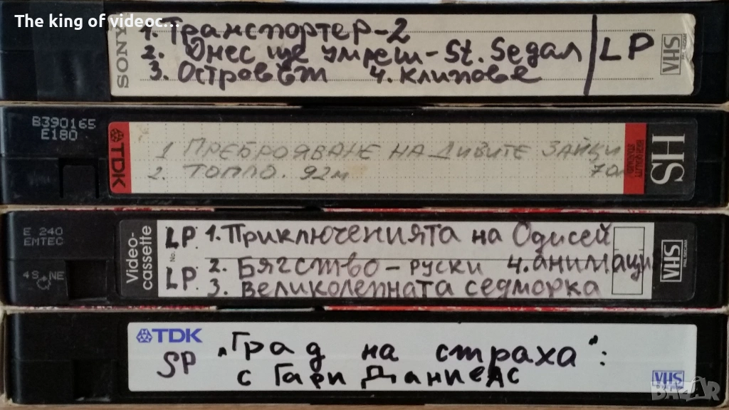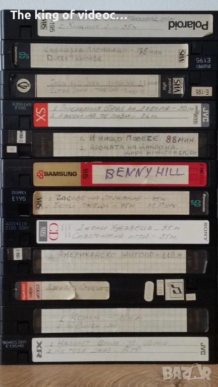 Продавам 38 броя видеокасети формат VHS с всякакви жанрове : Анимации, екшън, романтични , порно, еротика с музика, и други. 14 от касетите са във видеокутии Panasonic, много здрави и удобни , отварят се и се затварят с лекота . Част от филмите са : Пролетта на Микеланджело 1,2 и 3 , Американско жиголо , Кома , Имало едно време в Америка, Алф , Анимации, Порно , Оркестър Кристал , Най-хубавия час , Смъртоносна игра , Ах този джаз , Град на страха , Великолепната седморка , Багство, Топло , Преброяване на дивите зайци , Транспортер 2 , Днес ще умреш , Островът , Приключенията на Одисей , Дами канят , Специалист по всичко , Чарли Чаплин, Каналето и приятели, Да спиш с врага си , Джон Ленън - концерт, Истински романс , Аромата на циклона , Назарет, Часове на отчаяние, Бели Пясъци, Кавказка пленница , Queen, и много други. Общо около 80 филма и една почистваща видеокасета. Има и няколко видеокасети Panasonic Made in Japan. Филмите са озвучени на български език. 18 снимки на обявата и 9 снимки на част от касетите в работещо състояние . Видеокасетите се продават заедно . Изпращам с Еконт, Спиди или лично предаване. При изпращане ще бъдат сигурно опаковани. Цена 50 евро. Цената е крайна и не се коментира.