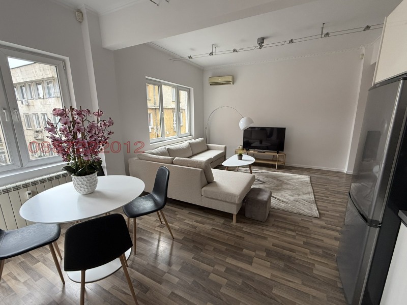 A very bright and welcoming one-bedroom apartment available for rent, located in a quiet inner building at 29A Tsar Osvoboditel Blvd, one of the most prestigious and central areas of Sofia. The property is within walking distance of Orlov Most metro station, Sofia University, BNT, Doctor s Garden and park Borisova Gradina.