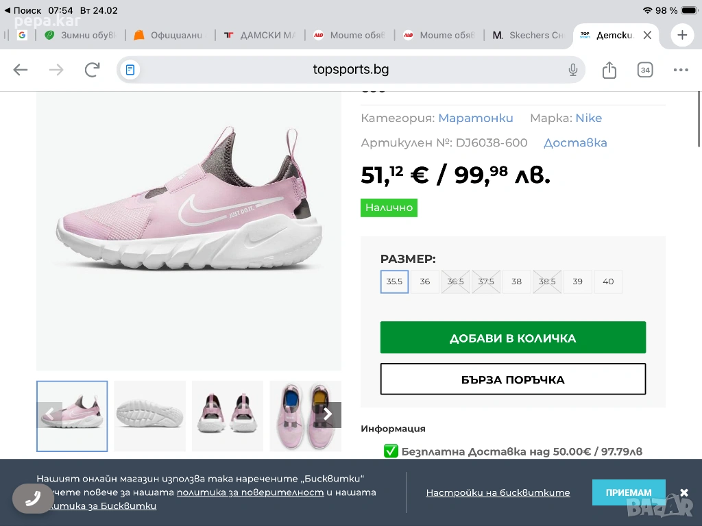 Розови NIKE Just do it №36. Олекотени маратонки ,ползвани,за 29€