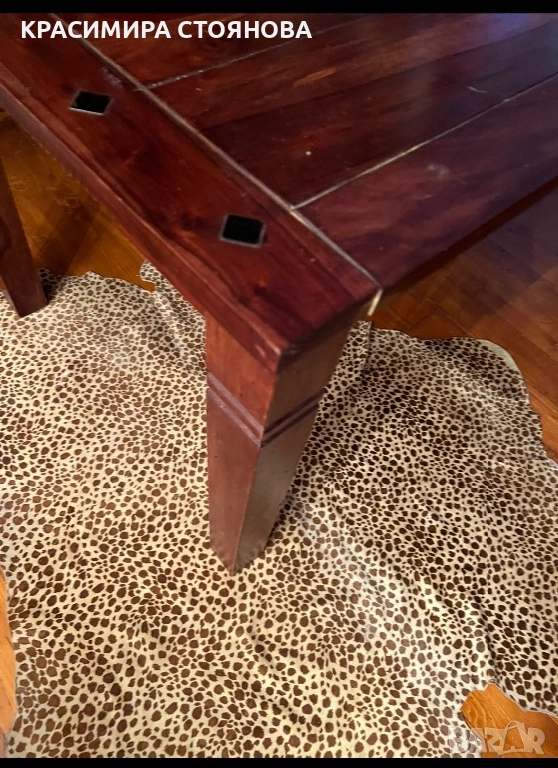 РУСТИК маса , неизползвана , само е сглобена . Подходяща за вила, голяма къща , стил РУСТИК . Към нея има 6 кожени стола , също неизползвани . Цена за един 50 евро