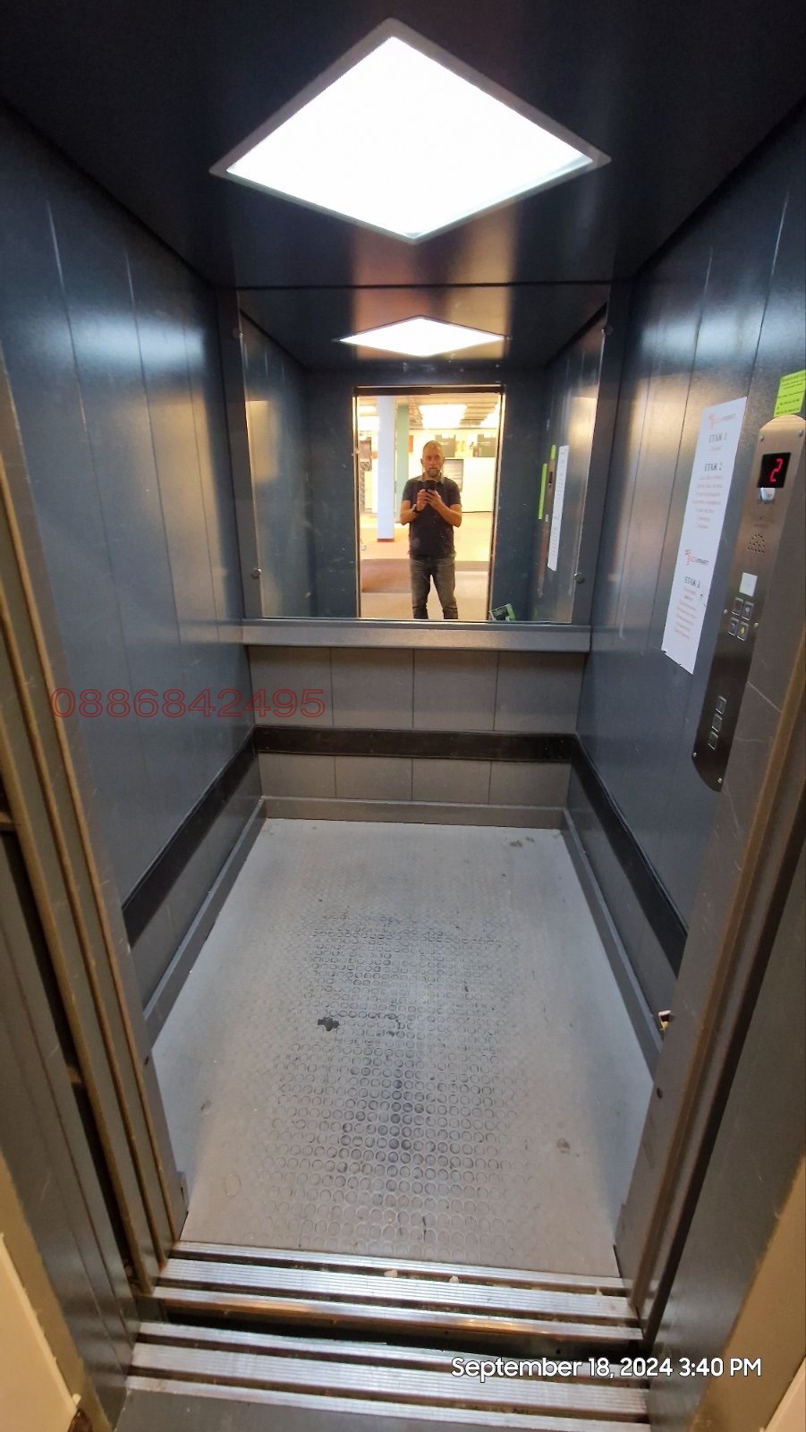 Вертикалната комуникация е посредством асансьор, обслужващ и трите нива и две отделни двураменни стълби. Първата стълба свързва паркинга в сутерена с търговската зала в партера, втората стълба свързва двете търговски нива на коти +0.00 и +4.20. Асансьорът е товаро-пътнически, като побира евро пале с товароносимост до 1800 кг.
