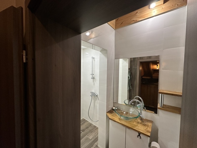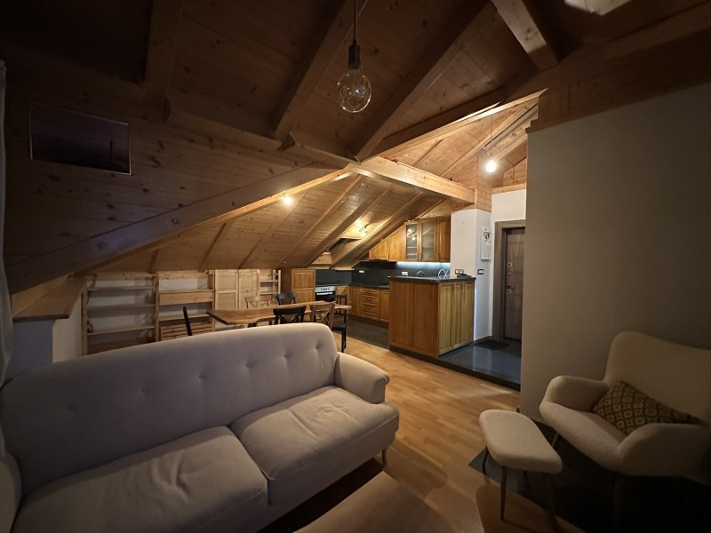 Жилището е ситуирано на 3ти етаж и разполага с площ от 58 кв.м. Отличава се с интериор, изграден от масивно дърво (дъб и чам), създаващ топла и естествена атмосфера. Разпределението включва светла дневна с кухненска и трапезна зона, отделна спалня,баня с тоалетна, килер. Пространството е функционално организирано и комфортно за дългосрочно обитаване.