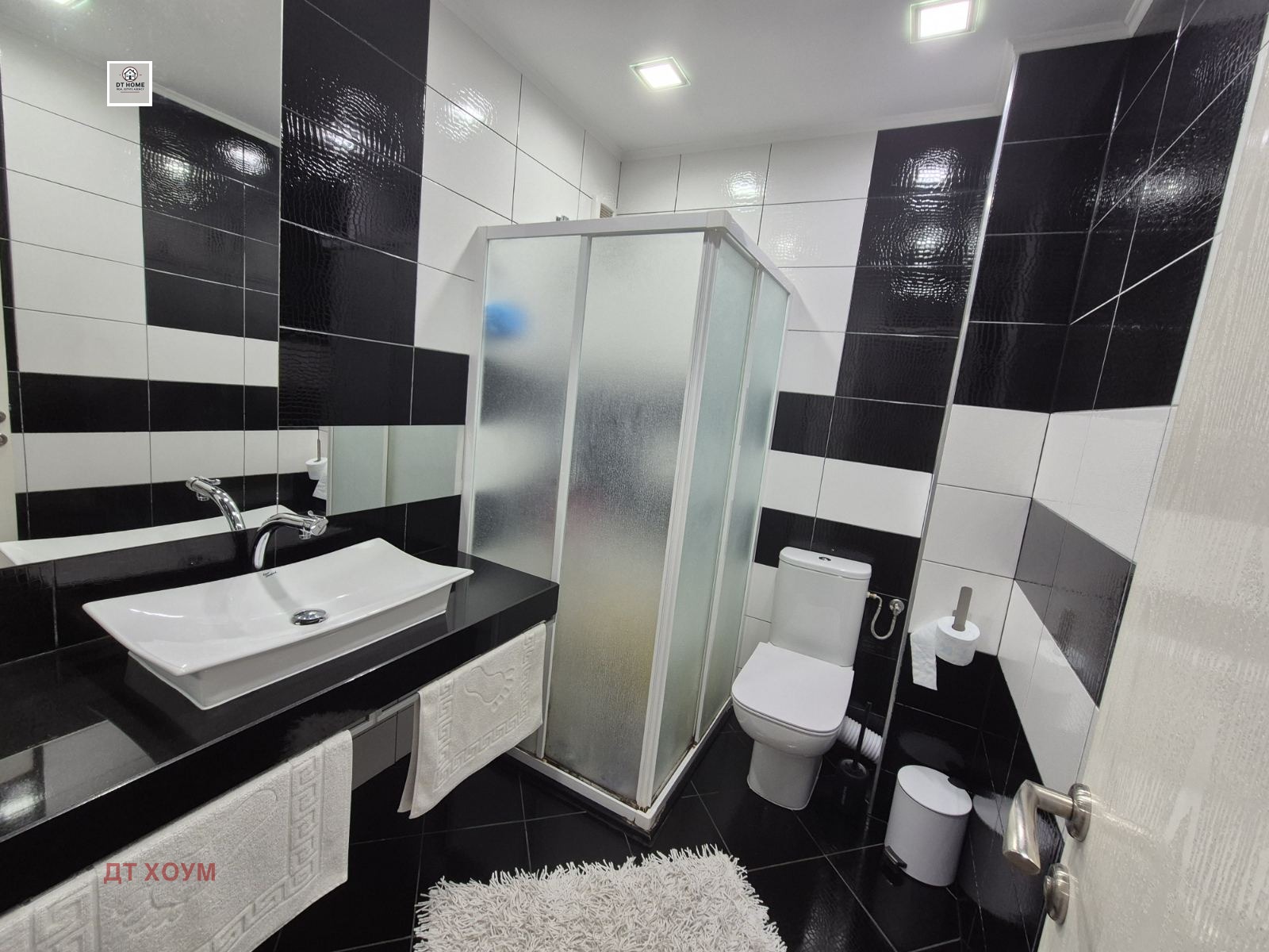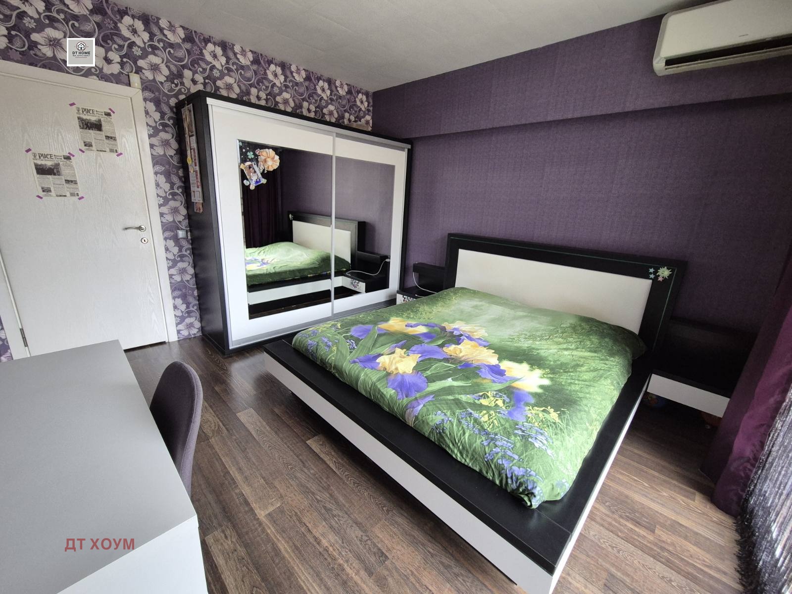 Апартамента се намира на 3 етаж от общо 8 и е с големина от 94 кв.м.. Чистата жилищна площ на апартамента е 76,87 кв.м., общи части към имота са 16,92 кв.м., към имота има и земя от 18,61 кв.м. Имота се продава изцяло обзаведен с всички мебели и електроуреди. Апартамента е вътрешно топло-изолиран, и външно саниран. Подовите настилки са от ламинат и гранитогрес, вратите са от МДФ (висок клас), Апартамента може да бъде много лесно преустроен на тристаен. Към имота има и маза с големина 7,05 кв.м.. Към имота могат да бъдат закупени един или два гаража намиращи се в сградата на блока с много добър заход. Висок клас нова ПВЦ дограма, нова ЕЛ инсталация и ВиК. Сградата е с контрол на достъпа с добре поддържани общи части. Идеален за закупуване с цел инвестиция, постоянно живеене или отдаване под наем.