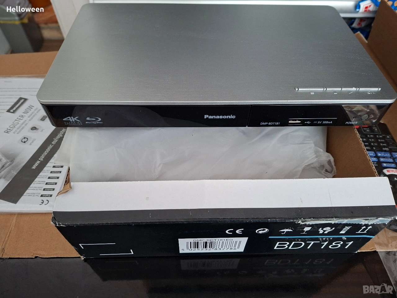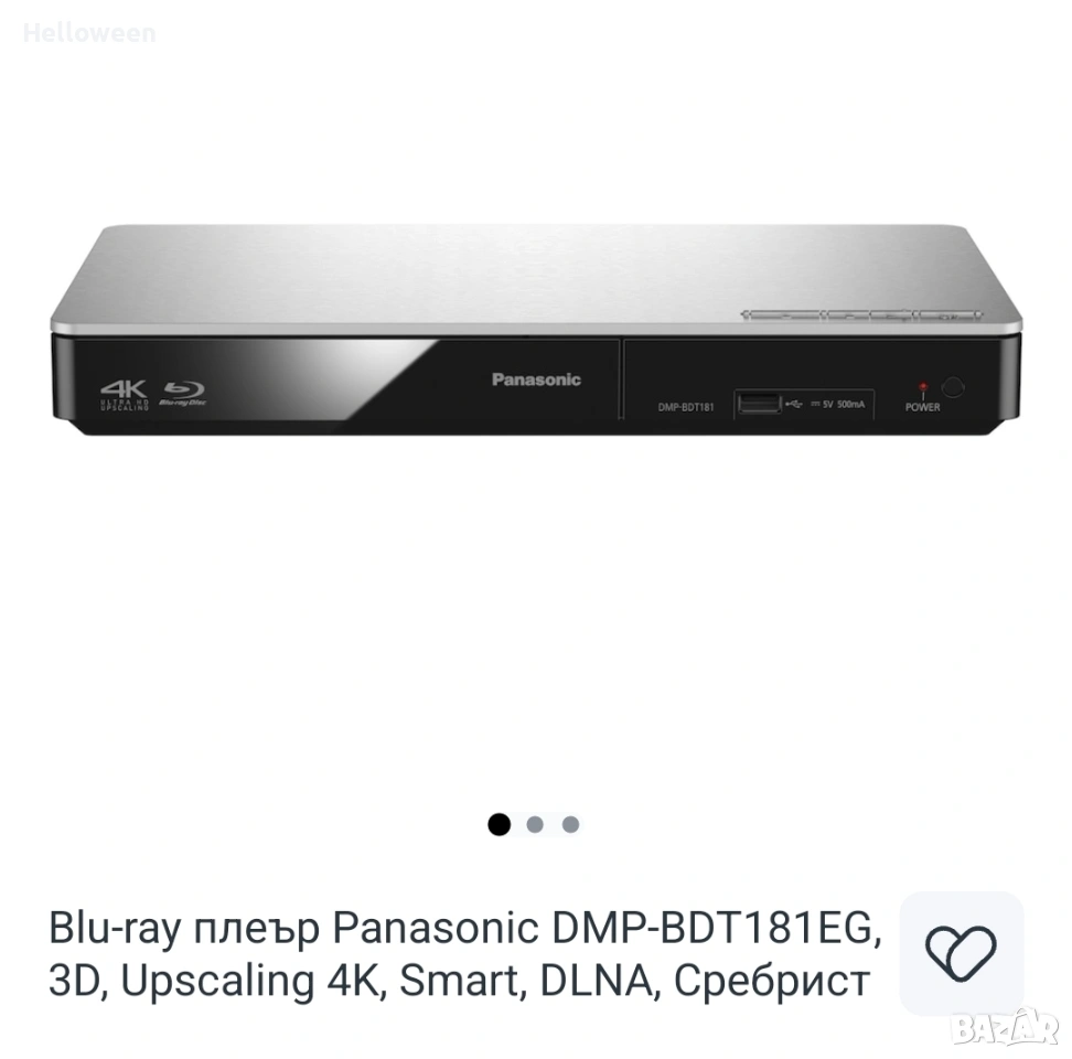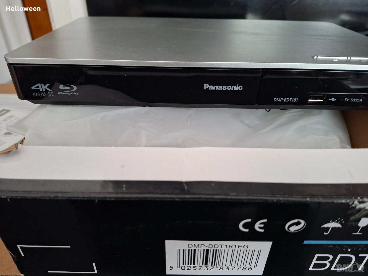 Нов, в гаранция Blu-ray плеър Panasonic DMP-BDT181EG, 3D, Upscaling 4K, Smart, DLNA, Сребрист. В оригиналната опаковка. В гаранция - до 25.01.2027г. 4K мащабиране възпроизвеждането на 4K снимки. 3D Възпроизвеждане. DLNA. USB