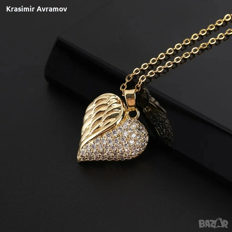❤️ Колие със сърце и ангелско крило, обсипано с кристали.