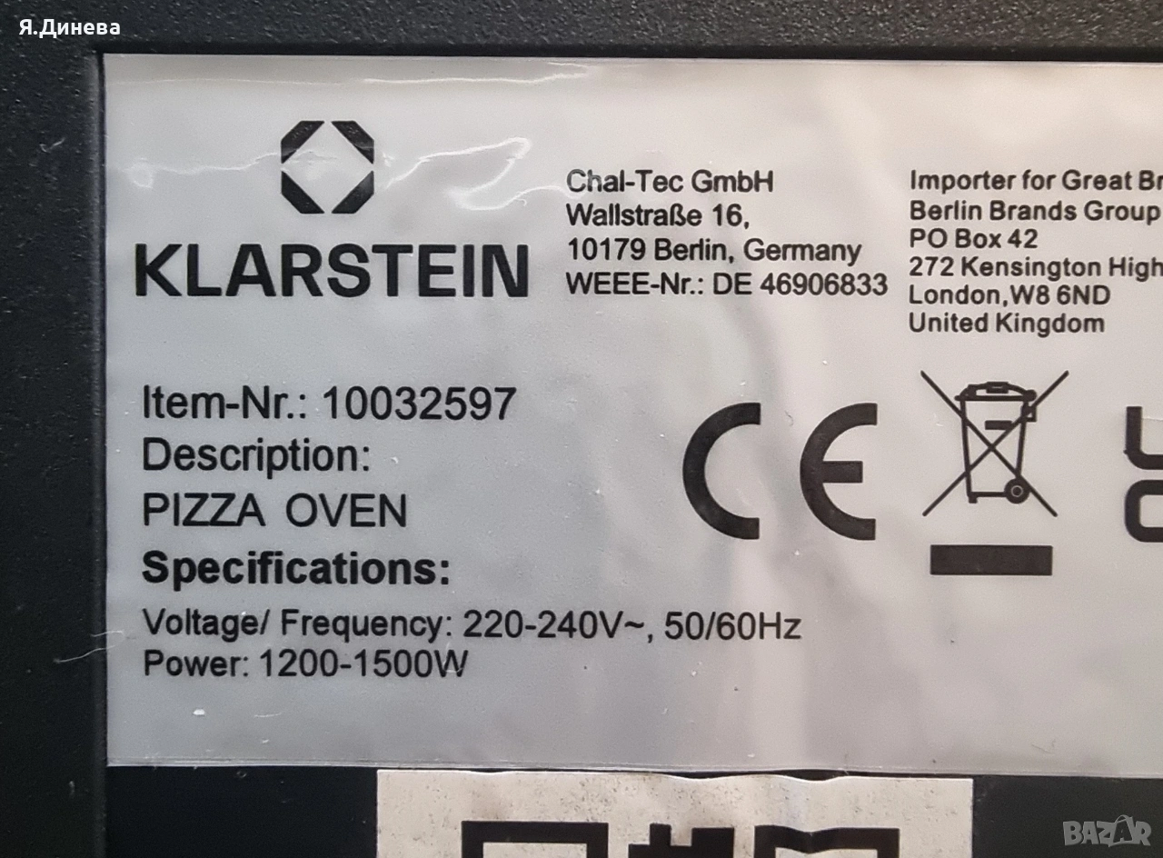 Продавам 2 бр електрическа пещ за мини пици Klarstein, тествана и работеща. И двете пещи са използвани няколко пъти, едната е работеща а другата не най вероятно трябва да й се смени риотана. Пещите са в комплект с 6 бр шпатоли към всяка. Внос от Германия цената на неработещата е 65ев.
